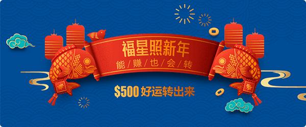 新春抽奖活动 为感恩回馈新老客户,新春上线幸运大转盘抽奖活动,奖品高达$500美元赠金红包。